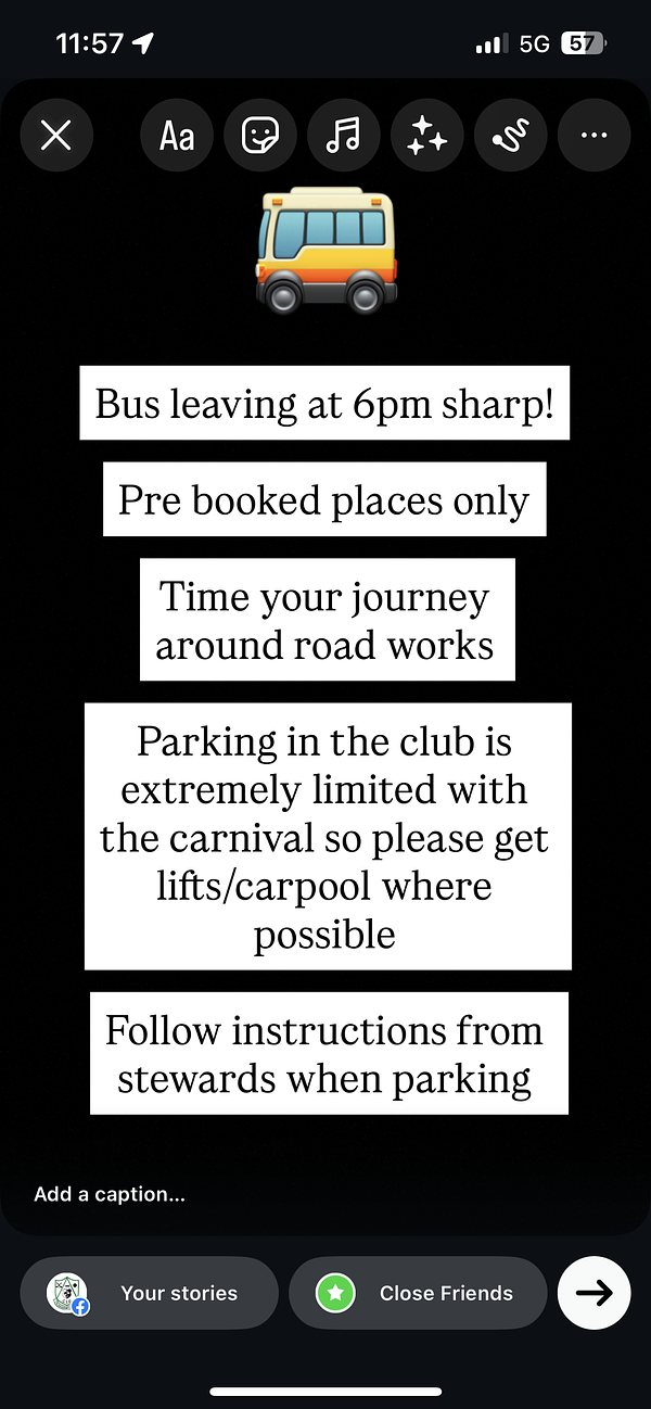 Reminder that the buses for Parnell park are leaving at 6pm sharp!